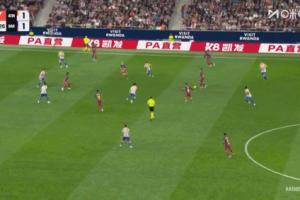 西甲第30轮,十人马竞主场1-2遭巴萨逆转绝杀。比赛第70分钟,巴萨前场配合,费兰一脚出球,奥尔莫前插的同时顺势脚后跟挑球过人杀入马竞禁区,吸引马竞多人防守后将球送到中路,费兰插上扫射被穆索扑出,一次极好的机会!
